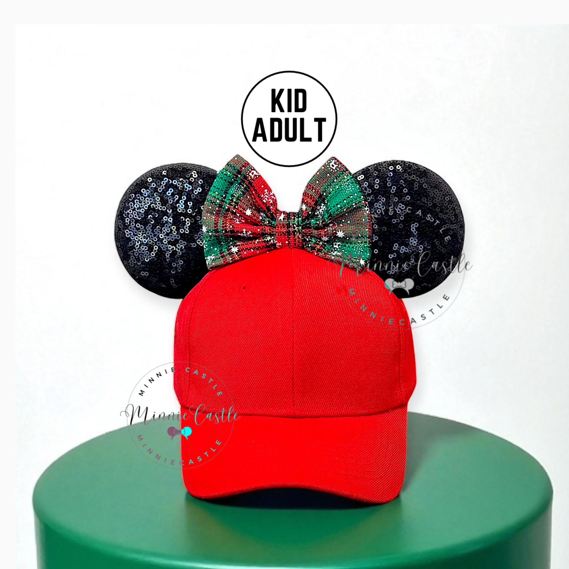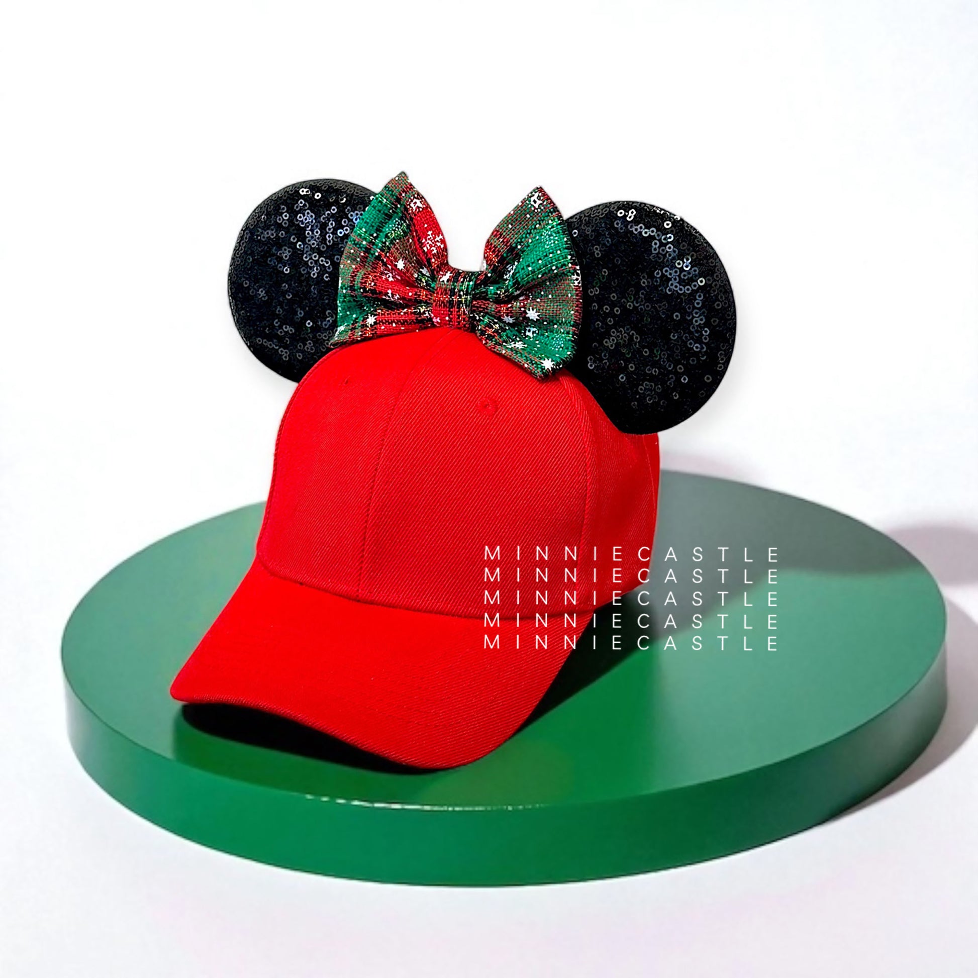 Get holiday-ready with our Christmas Bow Baseball Cap Mouse Ears! A fun and festive twist on the classic Mickey hat—perfect for kids, adults, and custom color lovers. Great for holiday gifts and park trips!