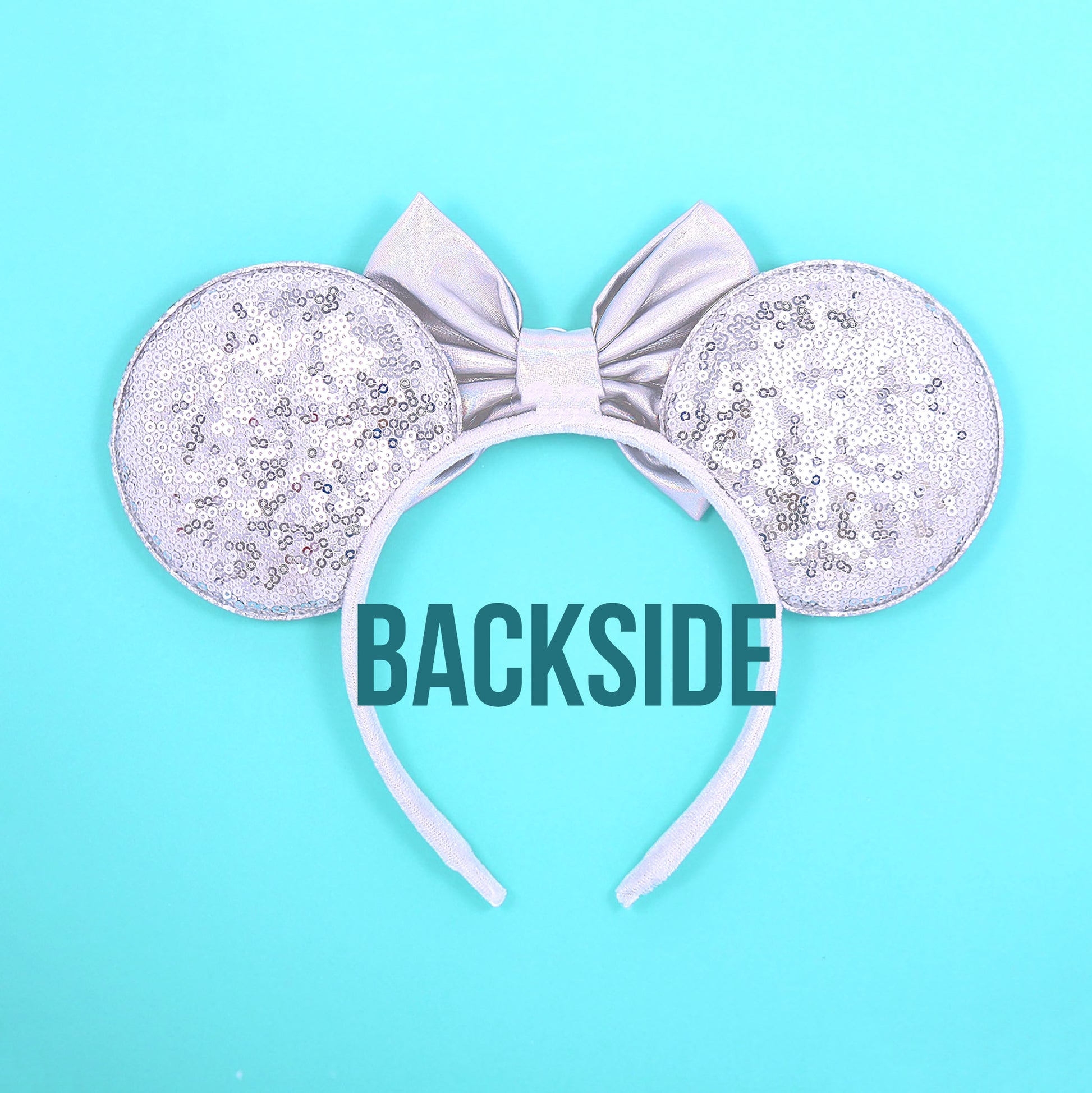 • Sequin Minnie Ears with 5" large Bow and Holographic metallic pattern on the front with a sequined back